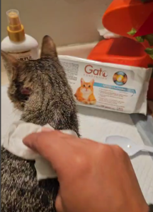 “Rescatamos y rehabilitamos gatos neonatos, muchos de ellos en condiciones muy difíciles. Las toallitas y productos de limpieza que recibimos son fundamentales para asear a los gatitos bebés y también para los más de 40 perritos que tenemos en resguardo”.