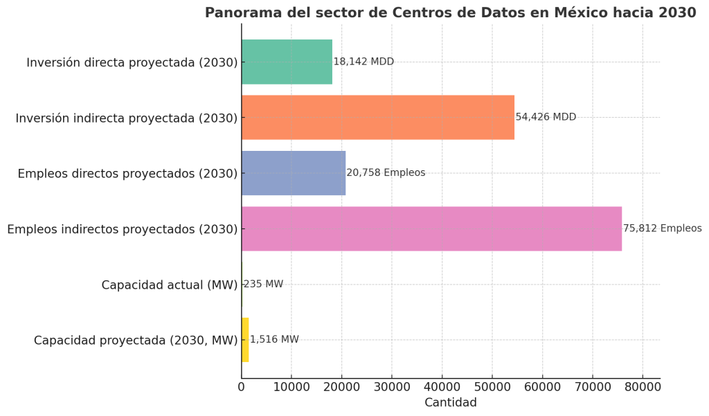 México cuenta actualmente con una capacidad operativa de 235 MW en centros de datos, con 74 MW en construcción. Para 2030, se espera alcanzar los 1,516 MW. Esta infraestructura digital no solo es clave para el sector tecnológico, sino también para la economía en general: desde el comercio hasta la educación, pasando por transporte, salud, finanzas y gobierno.