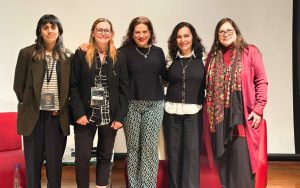 Diana Garay, Nuria Roldós, Alexandra Falla, Adriana Bernal y Georgina Terán, durante el conversatorio