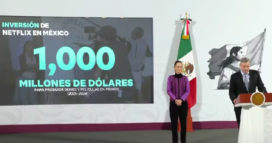 Netflix anunció este jueves, junto a la presidenta de México, Claudia Sheinbaum, que invertirá US$ 1.000 millones en la producción de películas y series en México durante los próximos cuatro años generará empleos, fomentará el talento local y ampliará las oportunidades para la comunidad creativa.