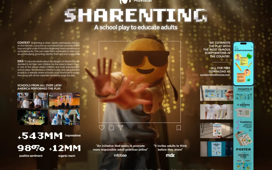 El sharenting, la tendencia de compartir fotos de niños en redes sociales, es un problema creciente en Argentina. Esta campaña concientiza sobre los riesgos de la sobreexposición infantil en internet a través de un musical escolar en el que los niños enseñan a sus padres sobre seguridad digital. La iniciativa promueve el intercambio responsable de imágenes y advierte sobre los peligros del grooming y el bullying.
