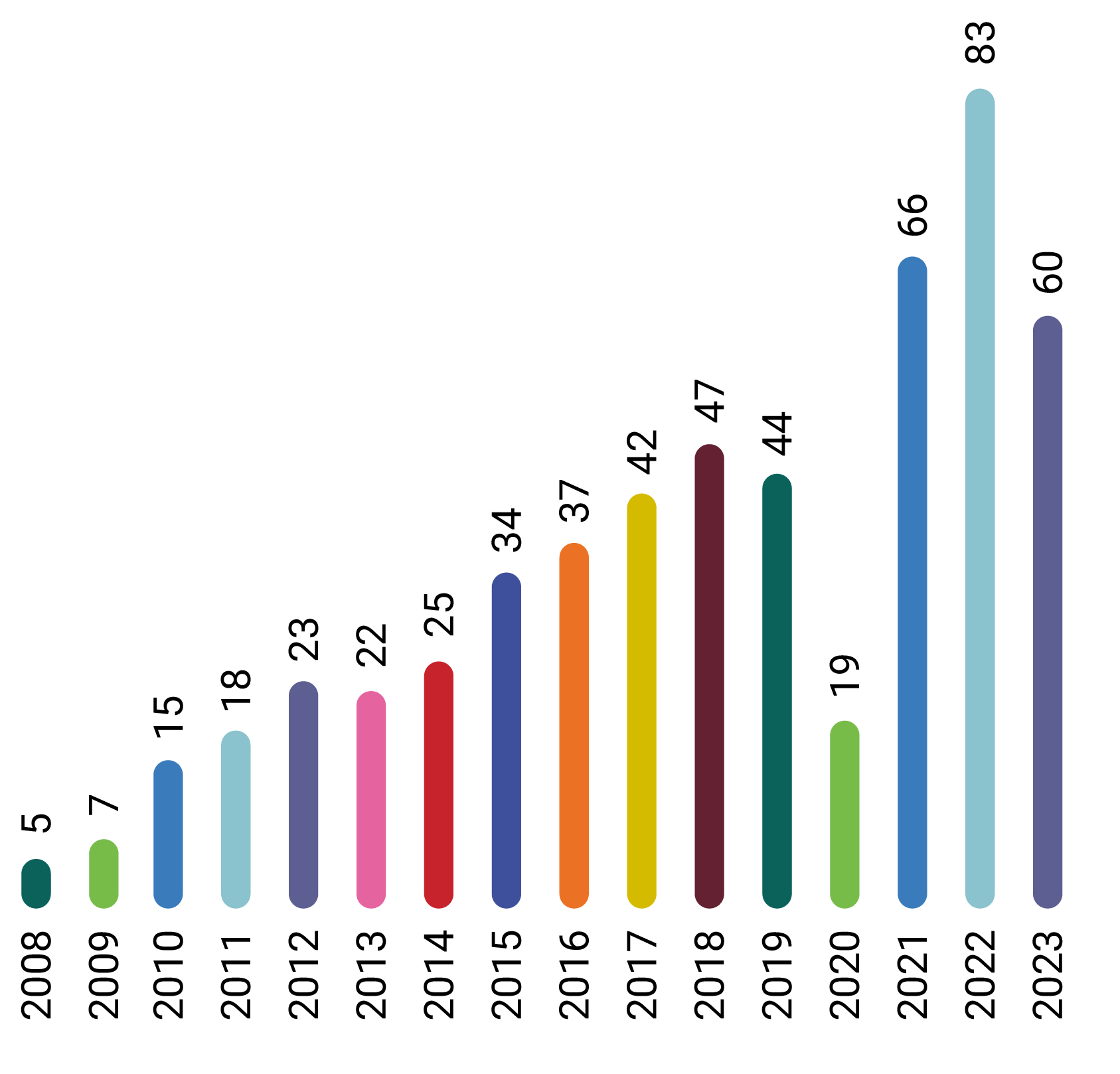 Número de largometrajes mexicanos dirigidos por mujeres en 2008-2023